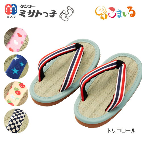ネコポス対象★ケンコーミサトっ子草履 子供用 (ハートピンク・ほしブルー・いちご・藍市松・トリコロール) 日本製 みさとっこ タタミ 雪駄 い草 鼻緒 和装 zri 浴衣 甚平 サンダル プレゼント ギフト