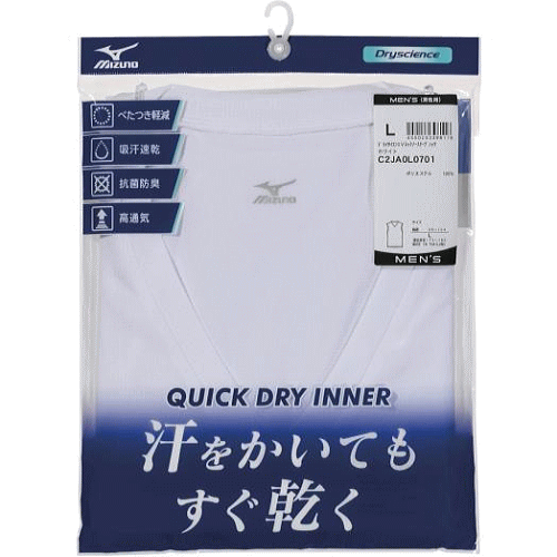 【5%OFFクーポン発行中★店内全品対象★7/19 20時〜4時間】さらっと爽快 快適インナー MIZUNO ミズノ ドライサイエンス クイックドライインナー Vネック ノースリーブ シャツ 肌着 下着 メンズ 男性用 C2JA0L07【1枚までメール便OK】