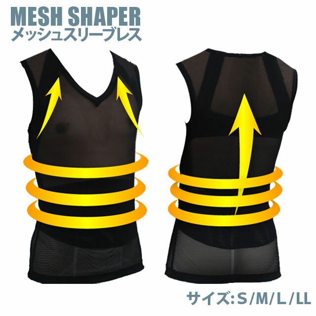 【補正下着 メンズ】[送料無料]MESH SHAPER ガードルスリーブレスシャツ メッシュシェイパー[kitora キトラ][S M L LL][男性用 メンズ Mens 矯正下着 美姿勢 猫背補正 丹田サポート ブラック ベージュ ホワイト]