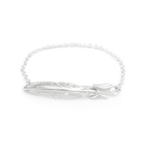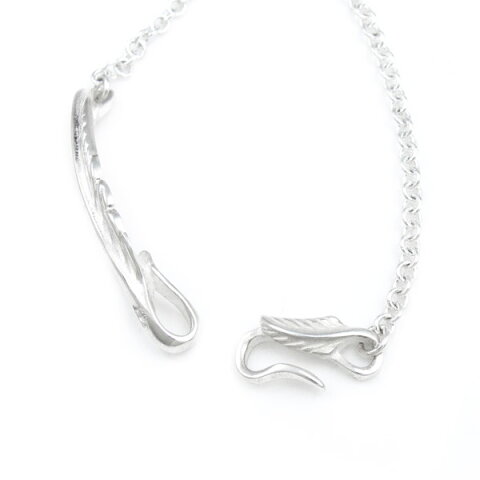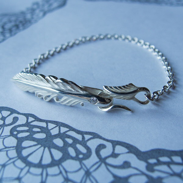 ■For レディス 大人気のフェザーモチーフシルバーブレス! ほどよいボリュームに作り上げたブレスはチェーンタイプ! フェザー部分には隠れハートのデザインが施されています。