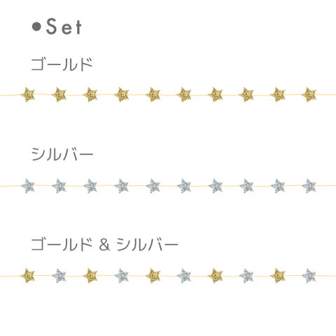 kokoni【スターガーランド】リトルスターガーランド10P ゴールド/シルバー ひも約1M 星約4.5cm【日本製 金 銀 スター きらきら キラキラ 星のガーランド 結婚式 オーナメント インテリア 誕生日 クリスマス パーティ お祝い 飾り付け ハーフバースデー】