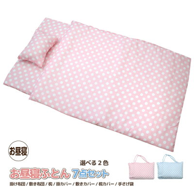 お昼寝 布団セット7点 ドット柄 掛布団 敷布団 枕 布団カバー 手さげバッグ 保育園 ジュニア 布団セット ベビー布団 掛け布団カバー 敷き布団カバー 枕カバー 入園 送料無料